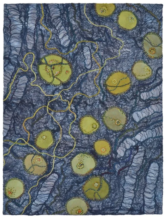 Susan Circone, Underwater Moonlight, cotton, silk, cheesecloth, floss, 12 x 16 inches, 2021. Courtesy of the artist.