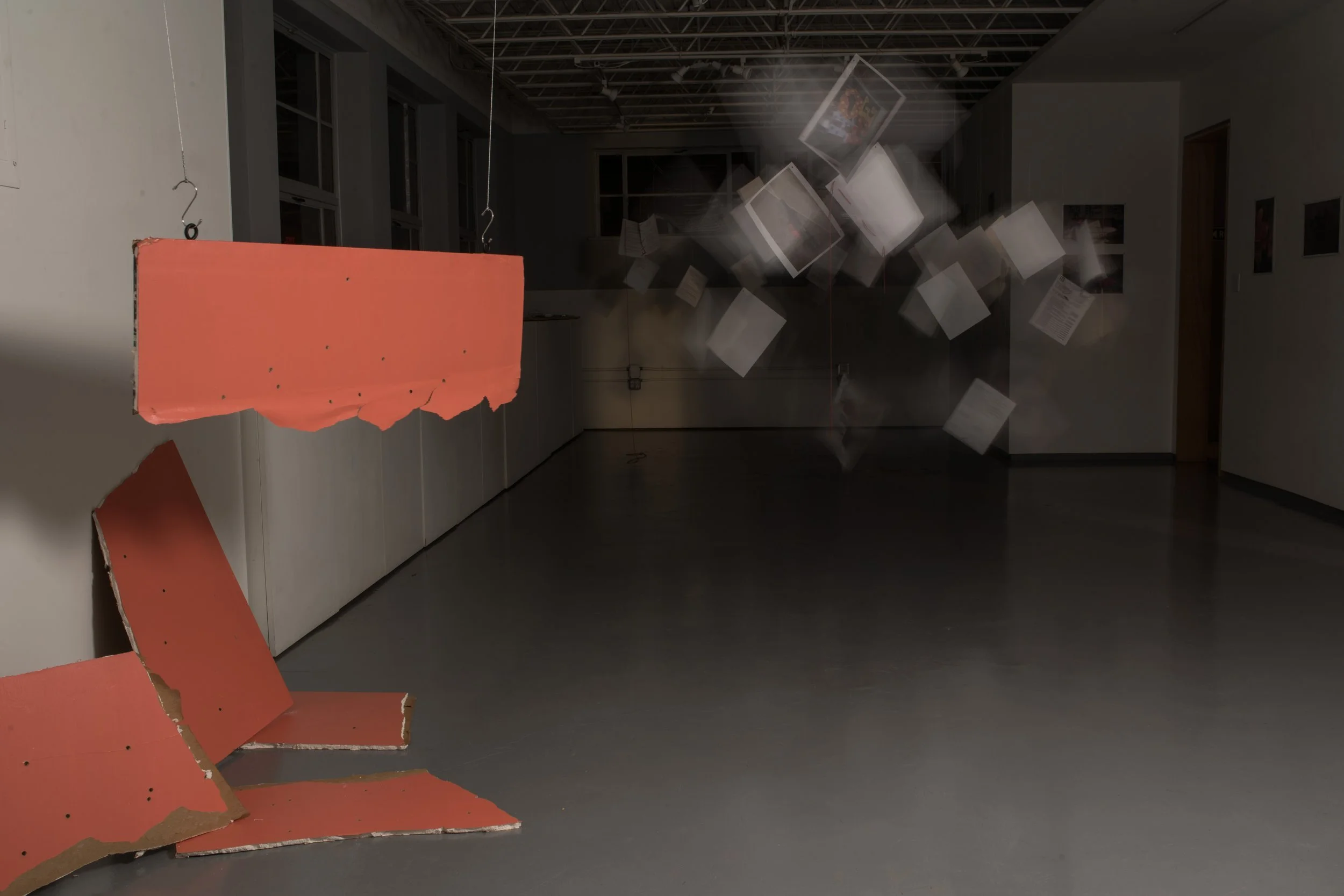 There are certain events and stories that hit home harder than others and Breonna Taylor’s murder was that for me. A few months after I moved into my home I had a peaceful encounter with police officers knocking on my door in the middle of the night looking for the previous homeowner. I didn’t think much of that interaction until years later in 2020 when Breonna Taylor was murdered in her own home in the middle of the night because police officers were looking for people who weren’t there. To translate this reminder into something physical, I painted a piece of sheetrock the same color as my bedroom and shot it thirty-two times to represent the number of bullets police officers fired into Breonna Taylor’s home. In addition, I display pages from some of the investigative reports from her case.